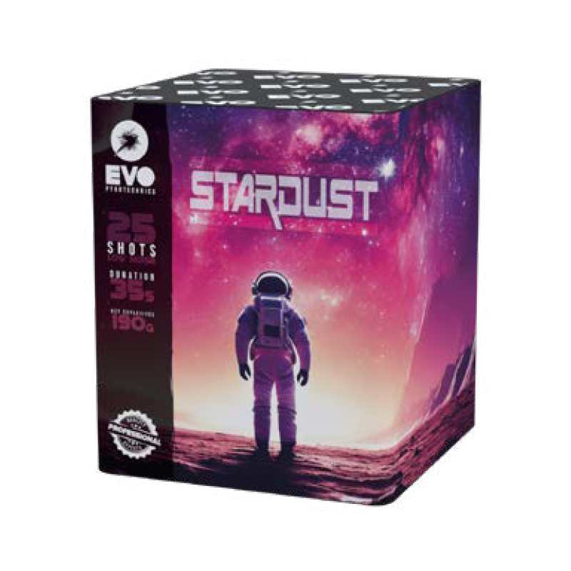 Shots: 25 Duration: 35seconds Net explosives: 190g Product size: 125x125x150mm Tube size: 20mm