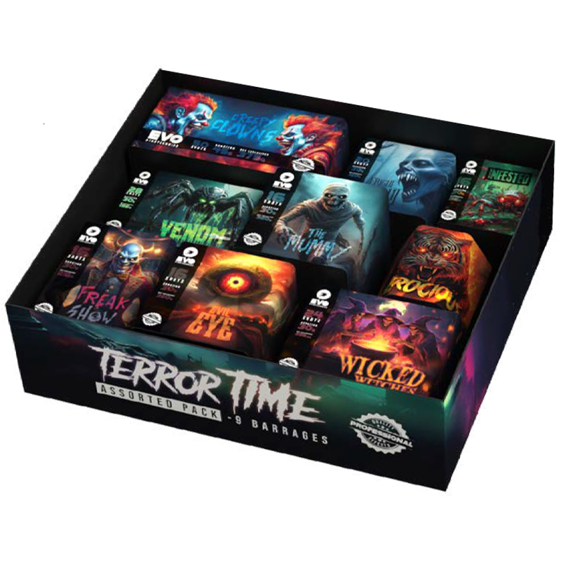 QUANTITY: 9 PACK OF BARRAGES Net explosives: 2140.5g BOX size: 526X456X148MM